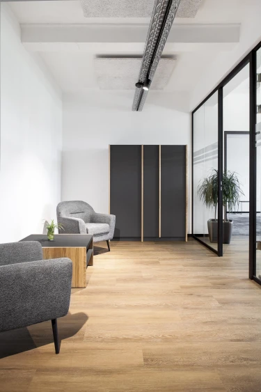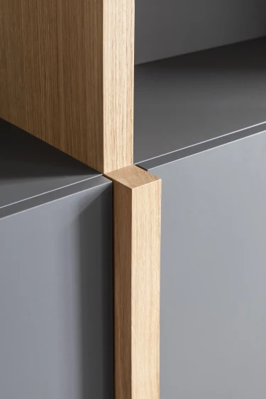 Das Miteinander mit der Leipziger Konsumgenossenschaft hat von Anfang an auf Augenhöhe funktioniert. Schnell war allen Beteiligten klar, dass es um mehr als den Entwurf und die Fertigung einer stimmigen, einmaligen Möbelkollektion ging, die elegant den Bogen in Richtung Zukunft schlägt. Das Ergebnis ist ein anspruchsvoller Arbeits- und Gesprächsbereich, der repräsentativ, fokussiert und stilsicher sowohl auf die lange Geschichte der Konsumgenossenschaft als auch auf die moderne Markenwelt des Unternehmens eingeht – und inmitten vieler Veränderungsprozesse eben auch Beständigkeit, Verlässlichkeit und Solidität ausstrahlt. So stehen die aufrecht verbauten Elemente aus Eiche für Kraft und Weiterentwicklung, während sie gleichzeitig Orientierung und ein schlüssiges Gesamtbild geben. Ganz so wie ein erfolgreicher Vorstand.